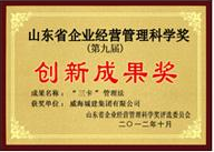 成果名稱:“三卡“管理獎 獲獎單位:威海城建集團(tuán)有限公司 頒獎單位:山東省企業(yè)委員會頒發(fā)