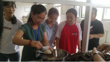 活動原定下午1點開始,很多女職工都選擇了提前到達,大家摩拳擦掌、躍躍欲試,都想一展身手。為充分弘揚公司尊老、敬老的光榮傳統(tǒng),集團女工委特意邀請退休職工張大姐進行現(xiàn)場指導(dǎo)。配料、折葉、扎繩、蒸煮,大家分工明確、各顯其能,整個過程充滿了歡聲笑語。經(jīng)過辛勤勞作,幾百個形態(tài)各異的粽子新鮮出爐,清爽甘醇的味道飄滿了整個食堂,看著大家熱火朝天的勁頭,張大姐不時給予了贊許的目光。