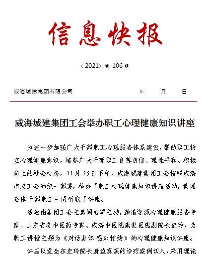 威海城建集團工會舉辦職工心理健康知識講座