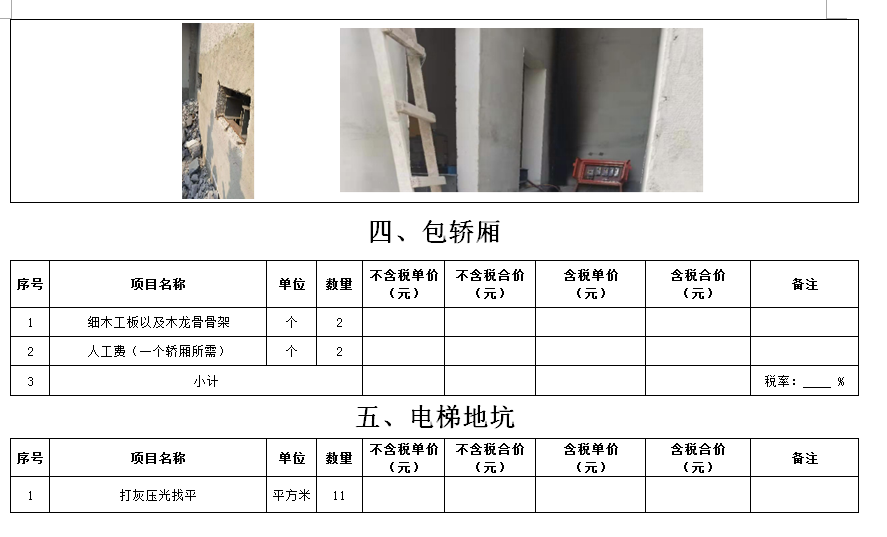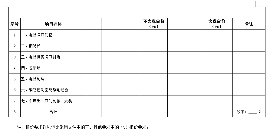 (5)采購范圍:電梯洞口門套、鋼爬梯、電梯機房洞口封堵、包轎廂、地面找平、地下車庫出入口真石漆等(詳見清單)等相關工作,具體內(nèi)容詳見采購文件。